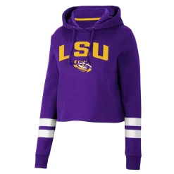 Gear up for a cool game day with this LSU Tigers Throwback hoodie from Colosseum. It features a stylish cropped hem and a hood in case you need a little extra coverage. Plus, the contrasting sleeve stripes complement the signature LSU Tigers graphics on the front and back for a dedicated fan look.