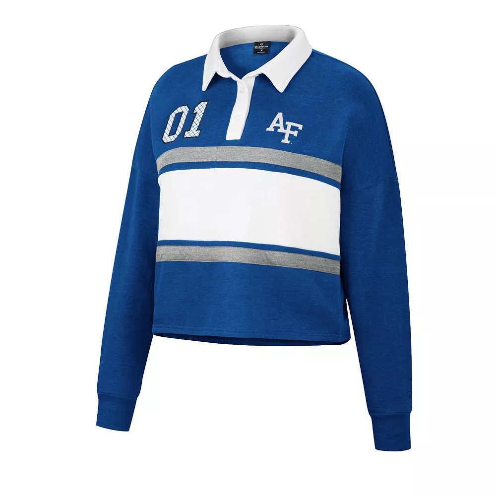 Merge the comfort of a long sleeve tee with classic polo details by wearing this I Love My Job Rugby shirt from Colosseum. It features stripes in team colors that highlight the embroidered Air Force Falcons logo. Soft fabric also makes this Air Force Falcons top comfortable to wear all day.