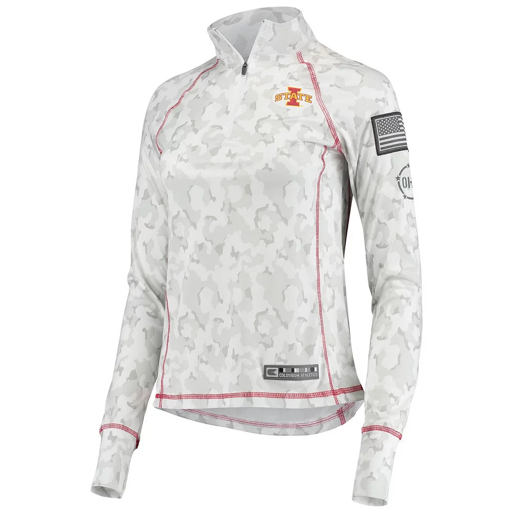 No matter where you watch the next Iowa State Cyclones game, make sure your look is as strong as ever in this OHT Military Appreciation Officer Arctic Camo 1/4-zip jacket. This piece of Colosseum gear features a distinct camo design and the Iowa State Cyclones logo is proudly displayed on the chest. Sport this over your go-to team tee for a complete look you will be proud to show off this season.