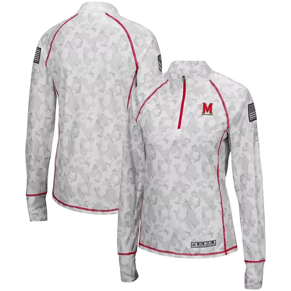 No matter where you watch the next Maryland Terrapins game, make sure your look is as strong as ever in this OHT Military Appreciation Officer Arctic Camo 1/4-zip jacket. This piece of Colosseum gear features a distinct camo design and the Maryland Terrapins logo is proudly displayed on the chest. Sport this over your go-to team tee for a complete look you will be proud to show off this season.