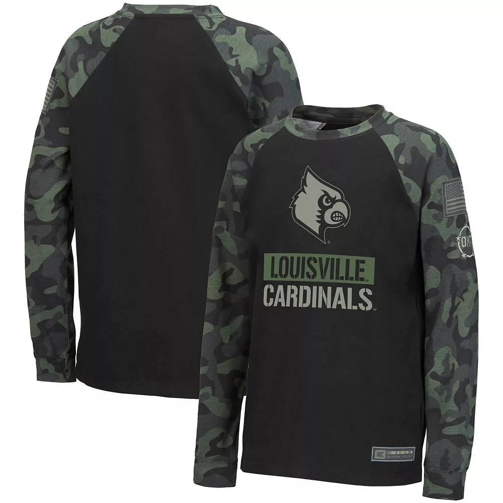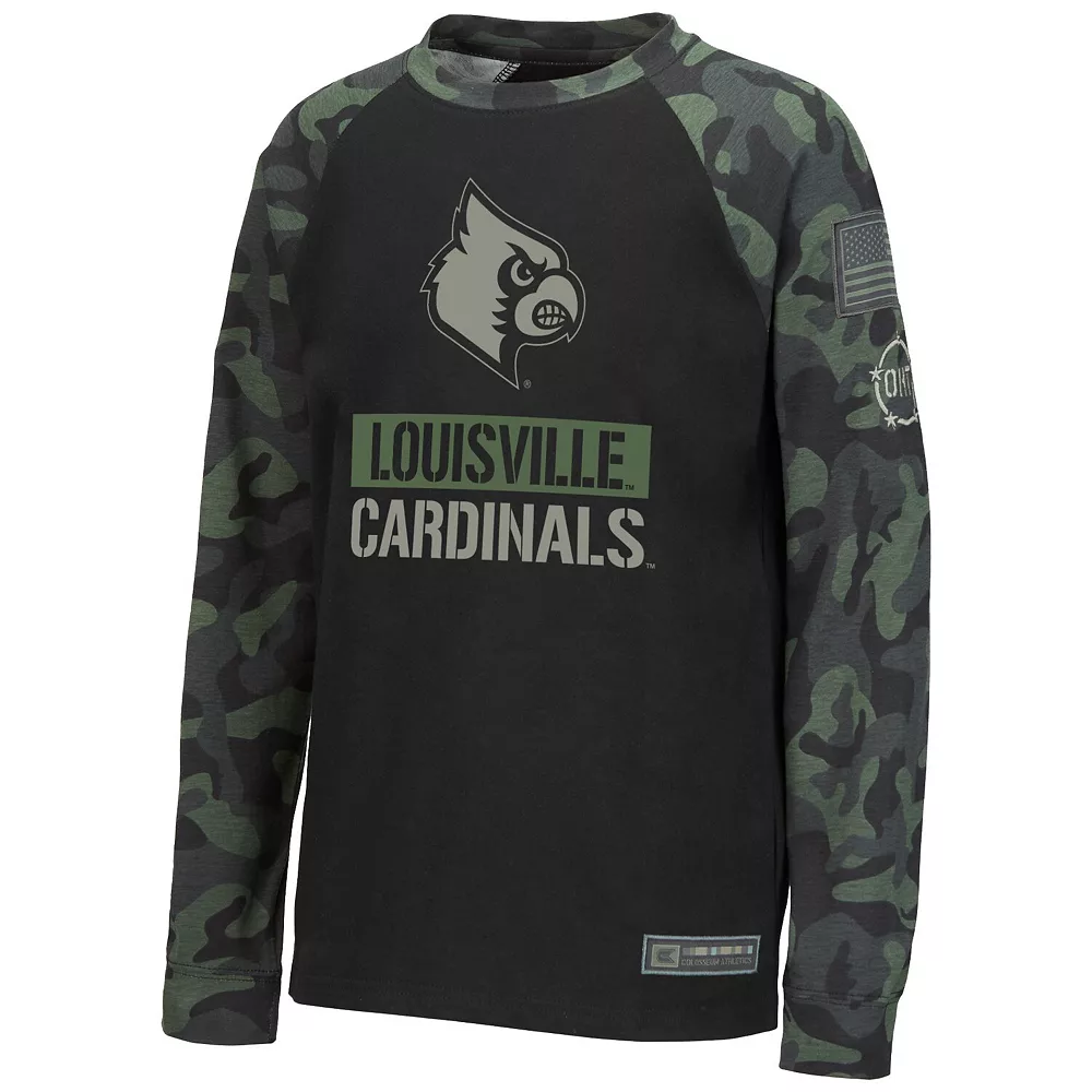 Encourage showing pride in the Louisville Cardinals and honoring service members by picking up this OHT Military Appreciation T-shirt from Colosseum. It features printed Louisville Cardinals graphics that coordinate with the camo print. Sporty raglan sleeves also provide a little extra room for more flexible movement.