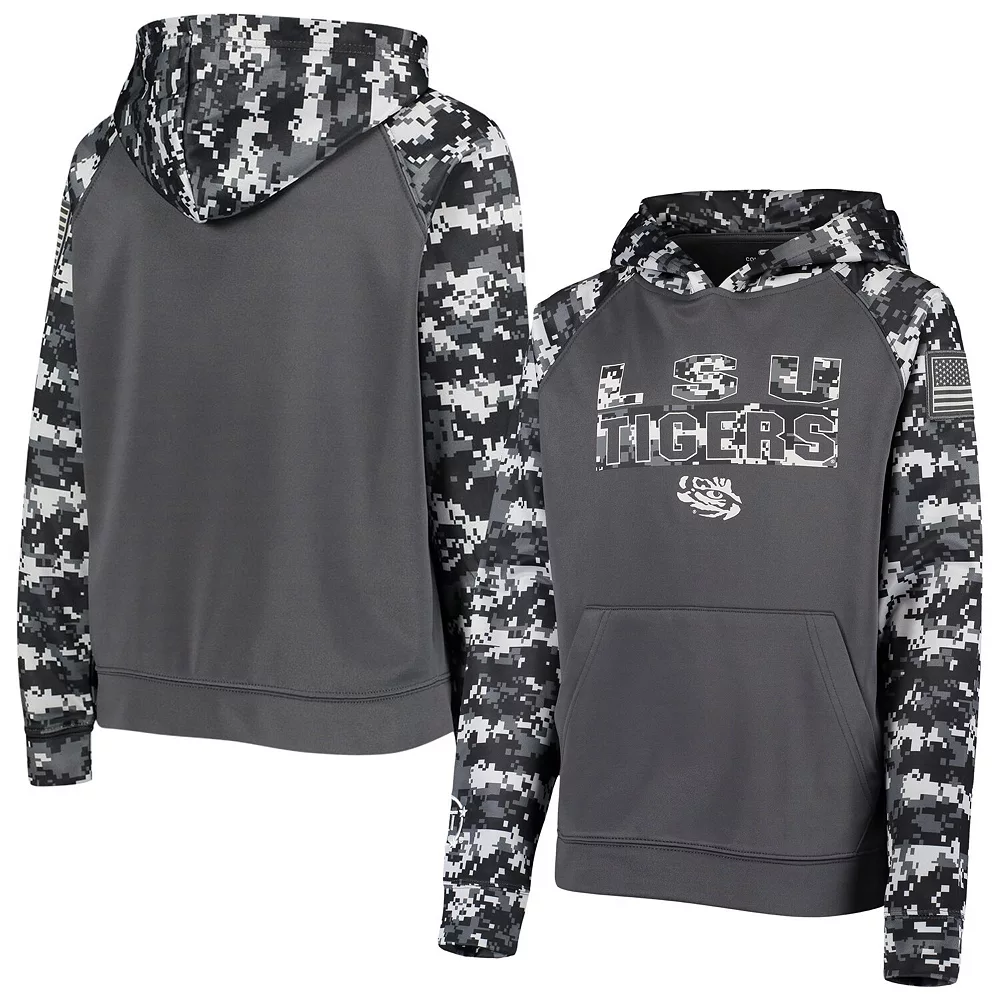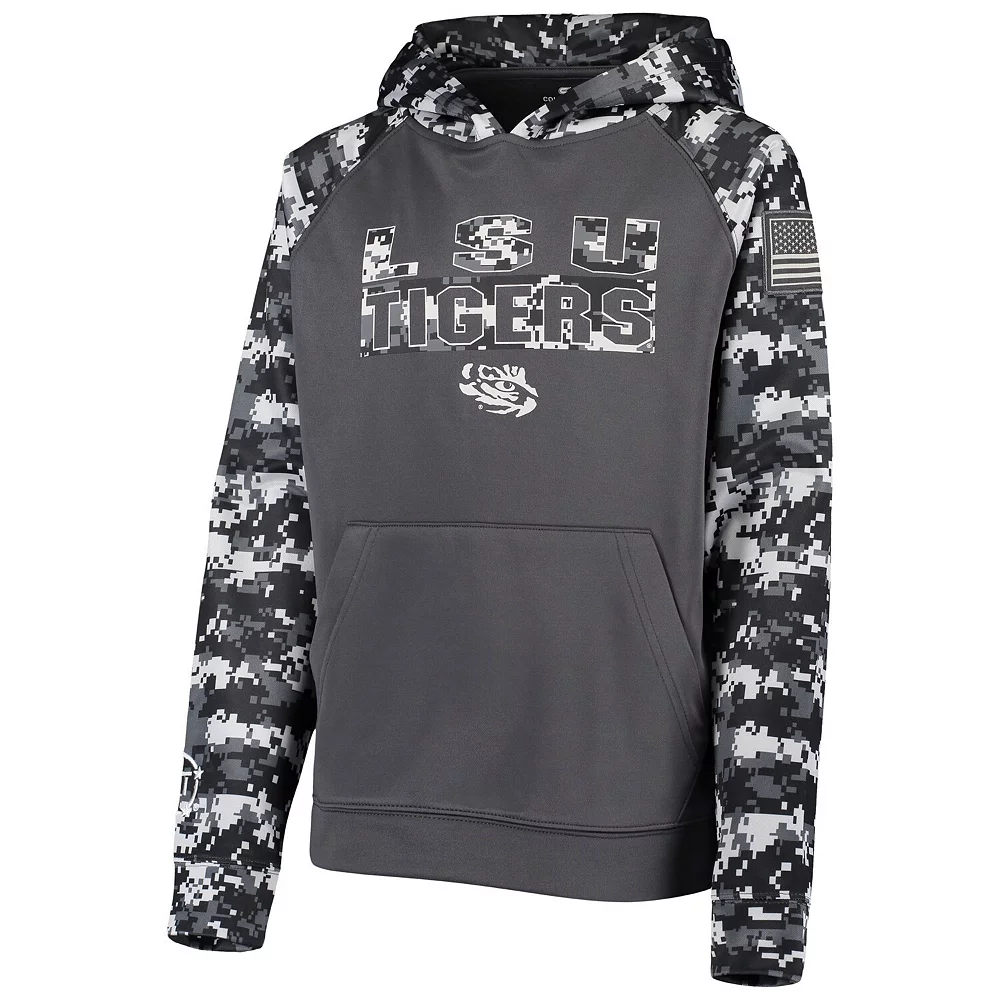 Your young LSU Tigers fan loves to show their appreciation for veterans. Help your kiddo gear up with this OHT Military Appreciation Digital Camo raglan pullover hoodie from Colosseum. With a striking digital camo LSU Tigers logo, this hoodie will show off your youngster’s favorite team while keeping them warm.