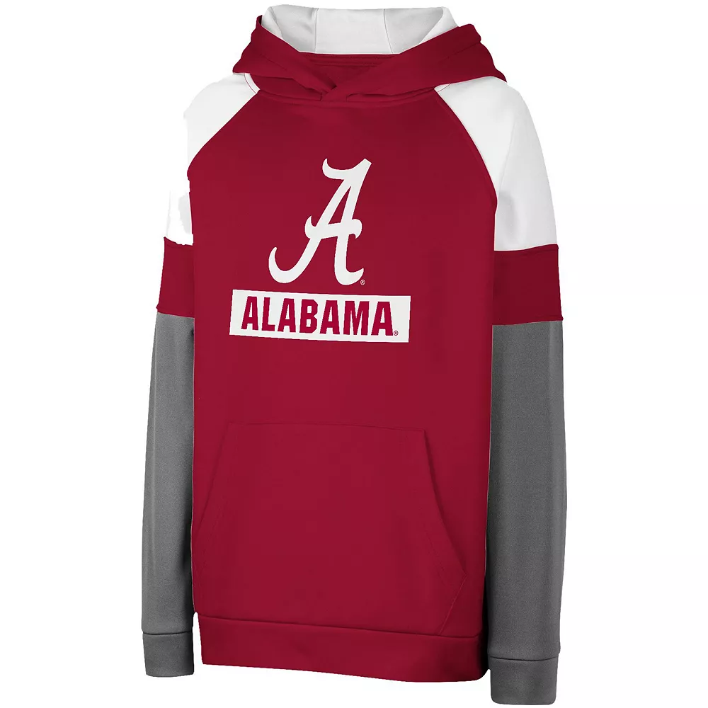 Gear up your young Alabama Crimson Tide fan with this Colorblocked hoodie from Colosseum. It features bold graphics on the front and contrast sleeves. The warm design will keep your youngster cheering the Alabama Crimson Tide to a win in any temperature.