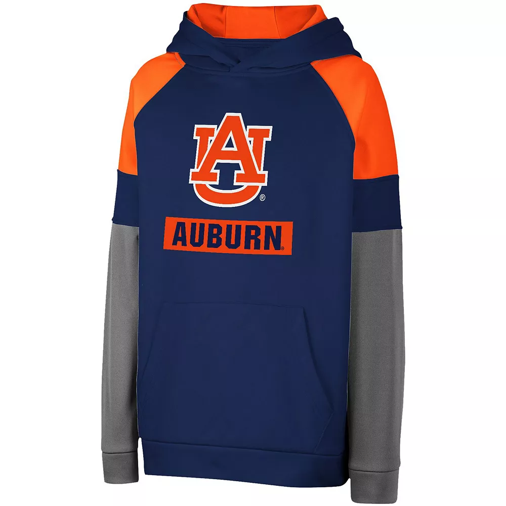 Gear up your young Auburn Tigers fan with this Colorblocked hoodie from Colosseum. It features bold graphics on the front and contrast sleeves. The warm design will keep your youngster cheering the Auburn Tigers to a win in any temperature.