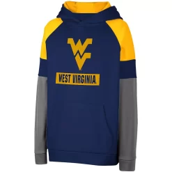 Gear up your young West Virginia Mountaineers fan with this Colorblocked hoodie from Colosseum. It features bold graphics on the front and contrast sleeves. The warm design will keep your youngster cheering the West Virginia Mountaineers to a win in any temperature.
